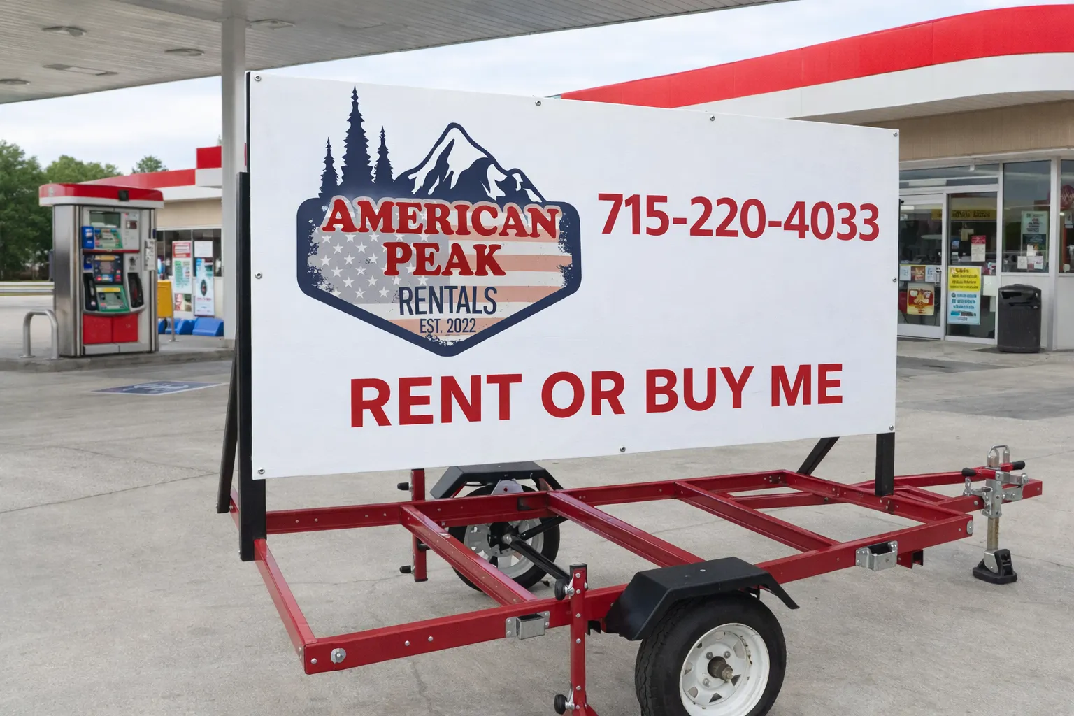 Mobile trailer with a 4'x8' customizable sign.
